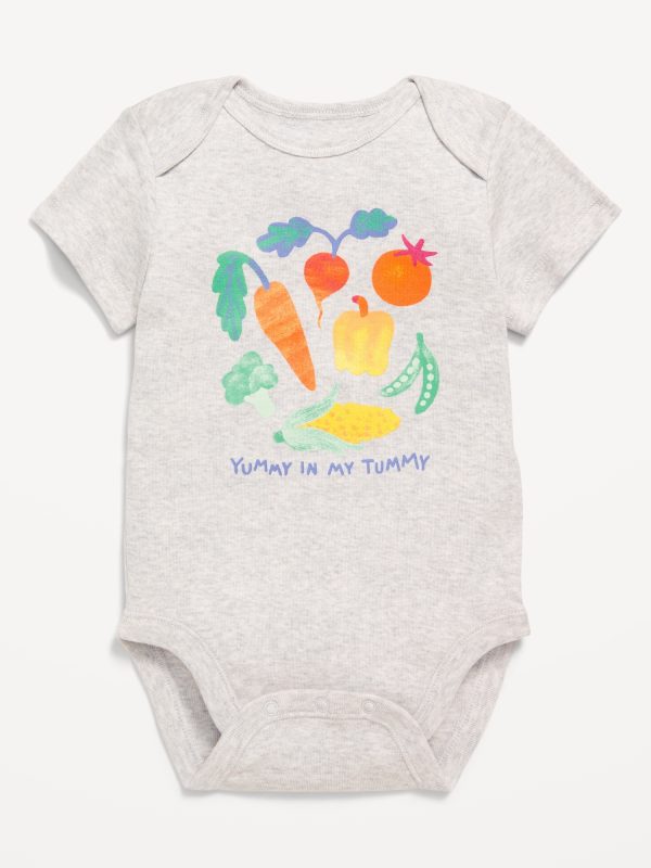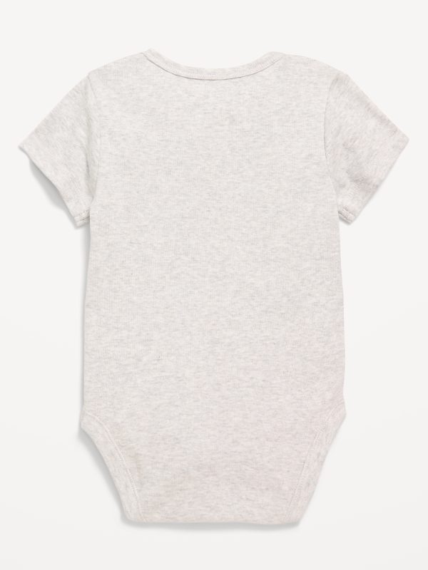 Unisex Short-Sleeve Bodysuit for Baby: rib-knit envelope neckline, short sleeves, graphic at front, snaps along inseam, #826349