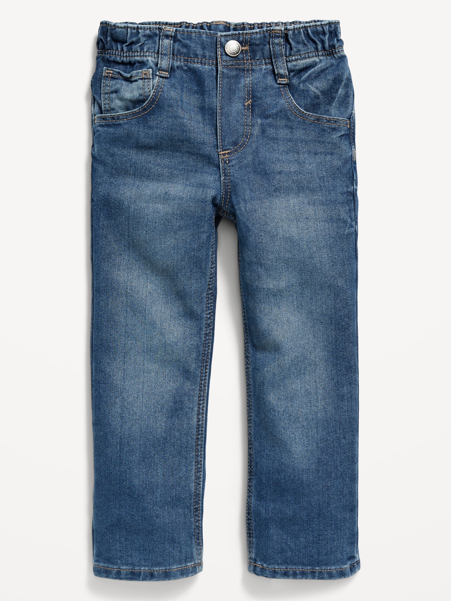 Unisex Wow Straight Pull-On Jeans for Toddler: Why do we call these Wow Jeans? It’s all about that jaw-dropping low price, fantastic fit and reliable comfort. WOW ‘em in your choice of leg shapes from straight to skinny! ?? ??, Elasticized pull-on waistband, with decorative non-functional button and built-in belt loops., Faux fly., Scoop pockets and coin pocket at front; patch pockets at back., Durable denim, with fading and whiskering for a vintage look., #422209