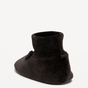 Velour Critter Slippers for Baby: bat features at front, faux-suede outsole, textured gripper dots, cozy cushioned foot bed, #787534