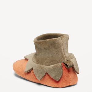 Velour Pumpkin Slippers for Baby: bat features at front, faux-suede outsole, textured gripper dots, cozy cushioned foot bed, #787534