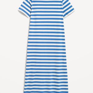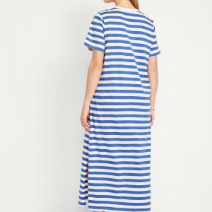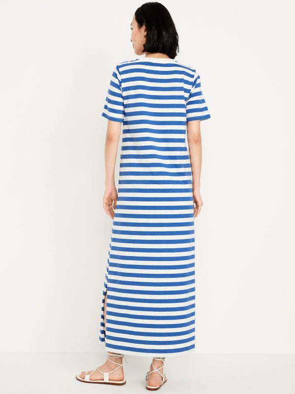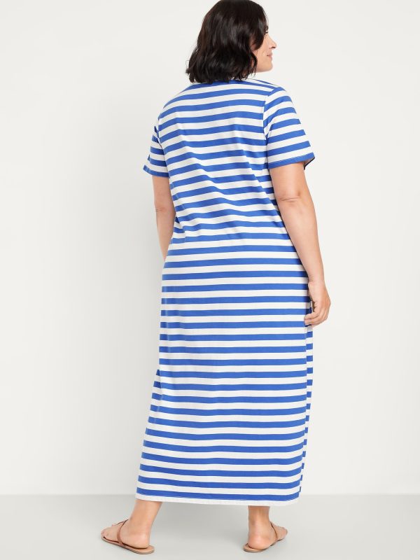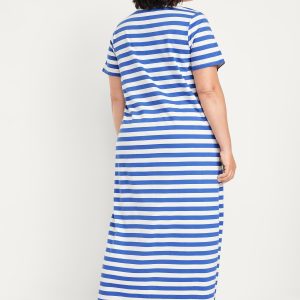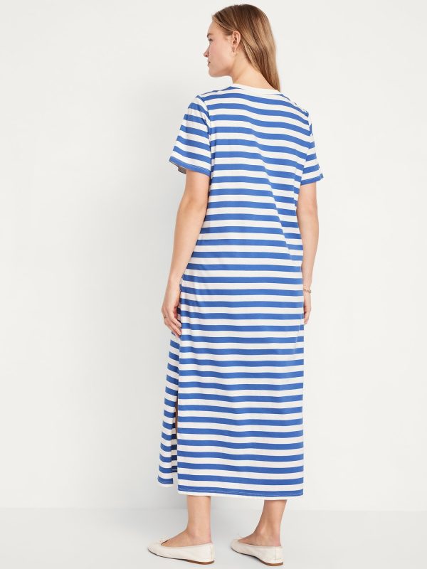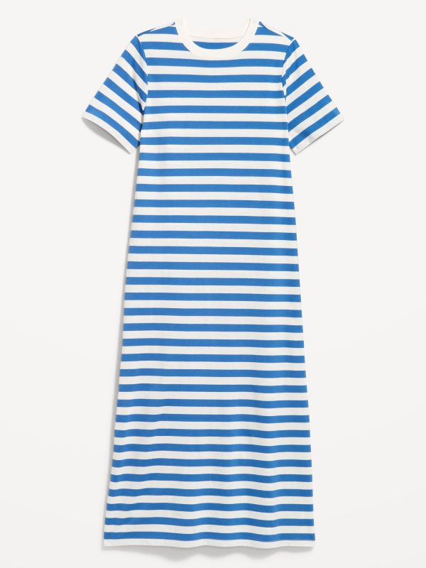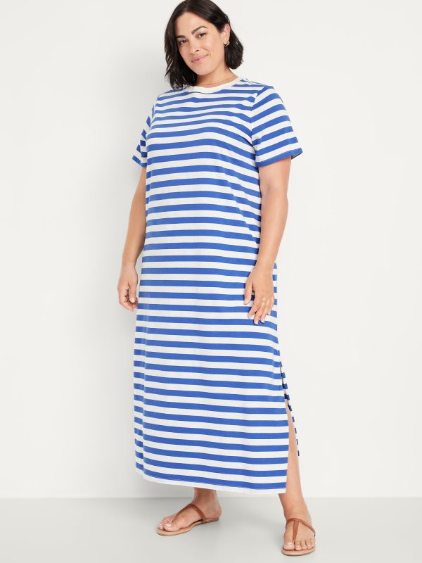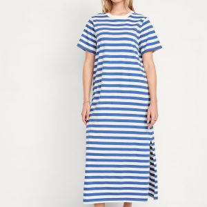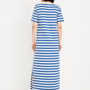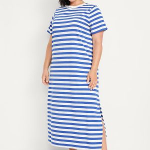 Vintage Crew-Neck Maxi T-Shirt Dress: A super relaxed fit with lived-in feels.rib-knit crew neck, short sleeves, side slits, striped print, #705306