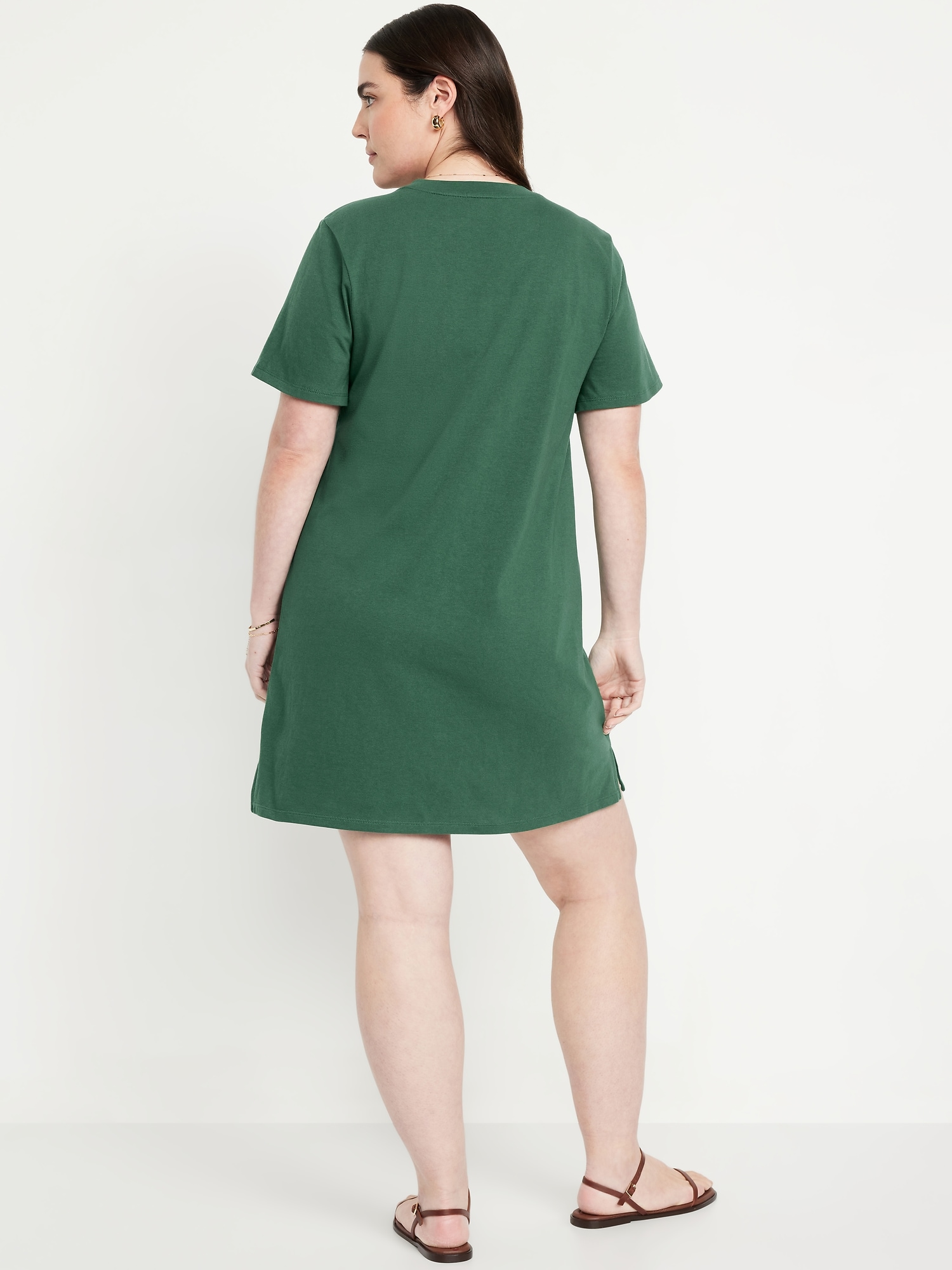 Vintage Crew-Neck Mini T-Shirt Dress: A super relaxed fit with lived-in feels.rib-knit crew neck, short sleeves, striped print, #705238