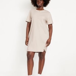 Vintage Crew-Neck Mini T-Shirt Dress: A super relaxed fit with lived-in feels.rib-knit crew neck, short sleeves, striped print, #705238
