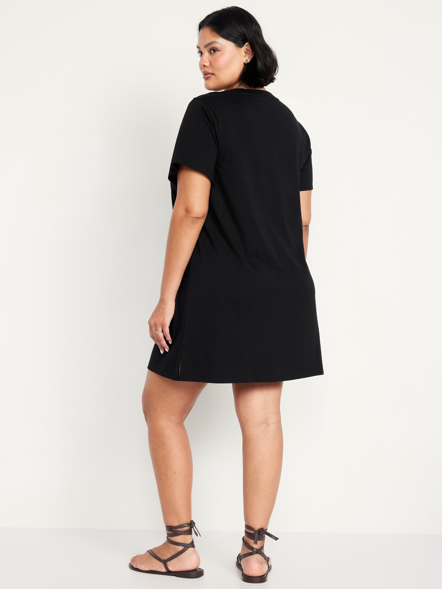 Vintage Crew-Neck Mini T-Shirt Dress: A super relaxed fit with lived-in feels.rib-knit crew neck, short sleeves, striped print, #705238