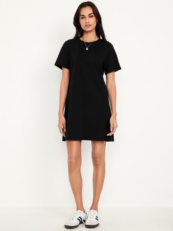 Vintage Crew-Neck Mini T-Shirt Dress: A super relaxed fit with lived-in feels.rib-knit crew neck, short sleeves, striped print, #705238