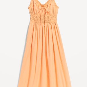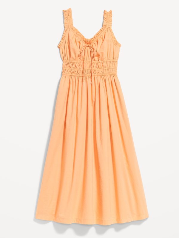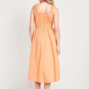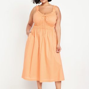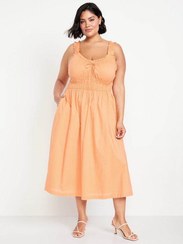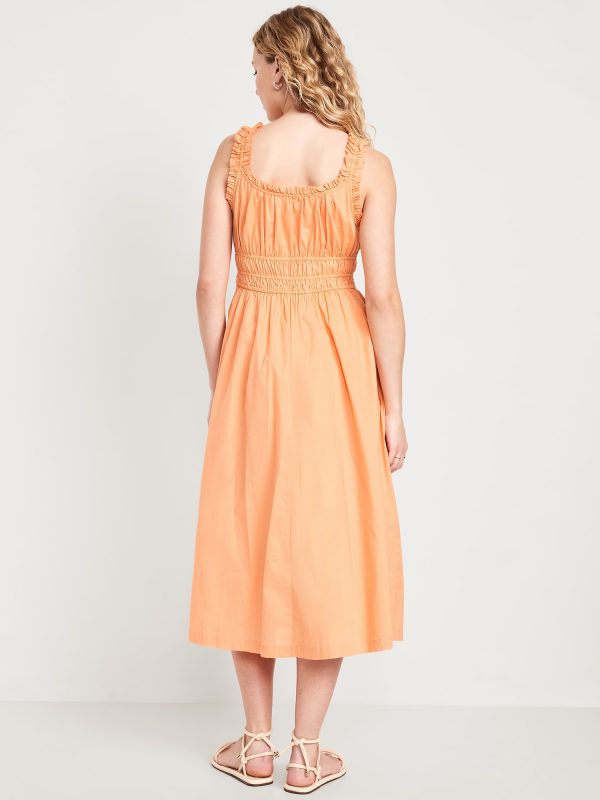 Waist-Defined Ruffled Midi Dress: v-neck, ruffled elastic straps, smocked waist, #705707