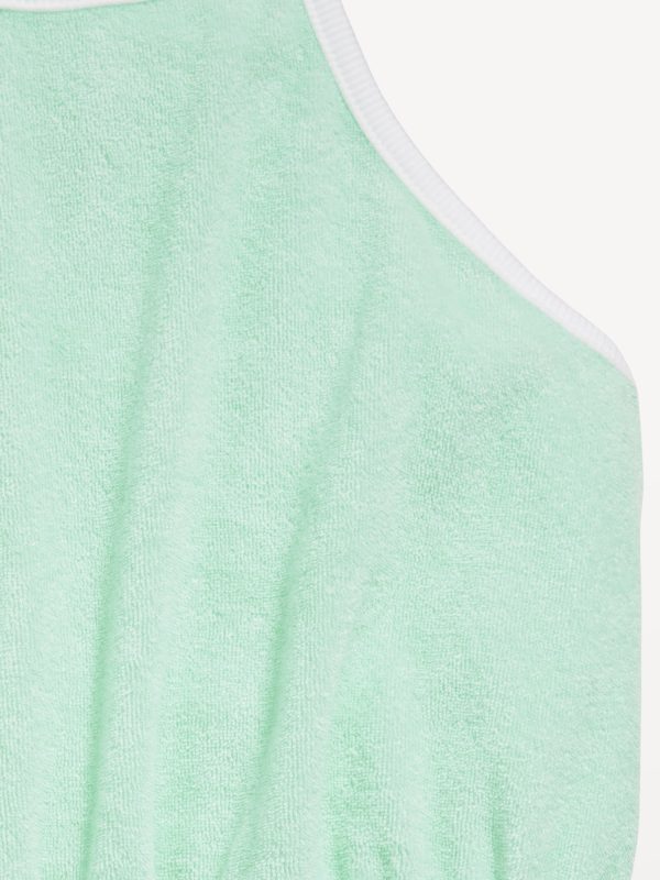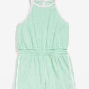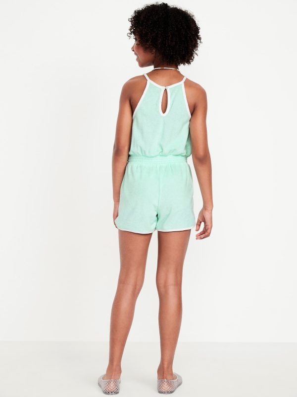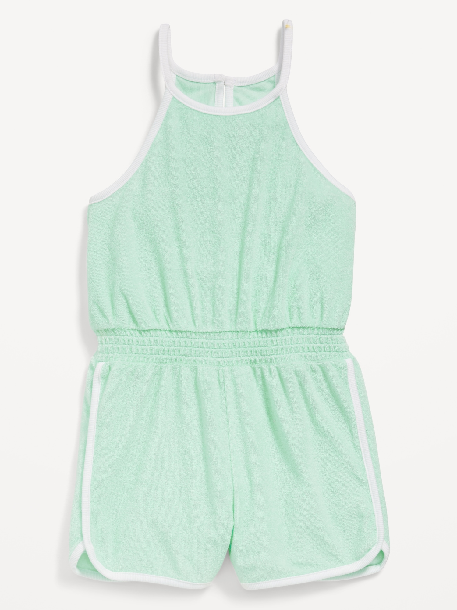 Waist-Defined Terry Romper for Girls: high neck, sleeveless, smocked defined waist, button-loop closure at nape, #766622