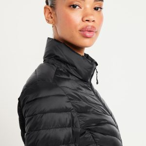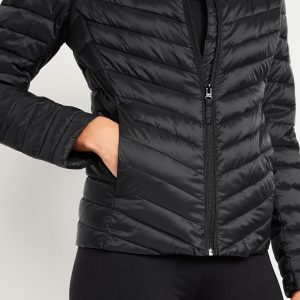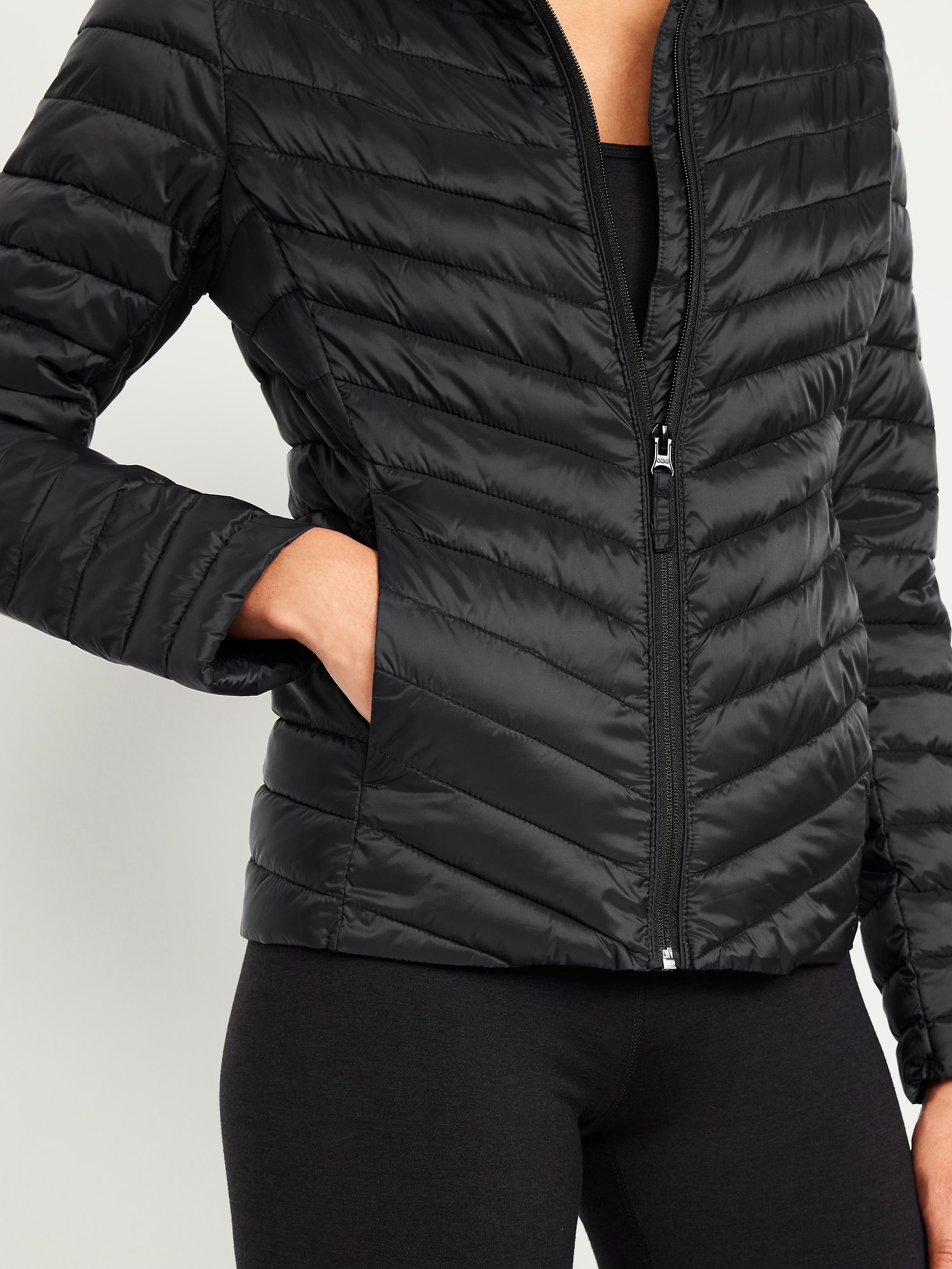 Water-Resistant Narrow-Channel Puffer Jacket: mock neck, long sleeves with elastic cuffs, full-zip front with zipper guard, on-seam zip pockets, packable, #784476